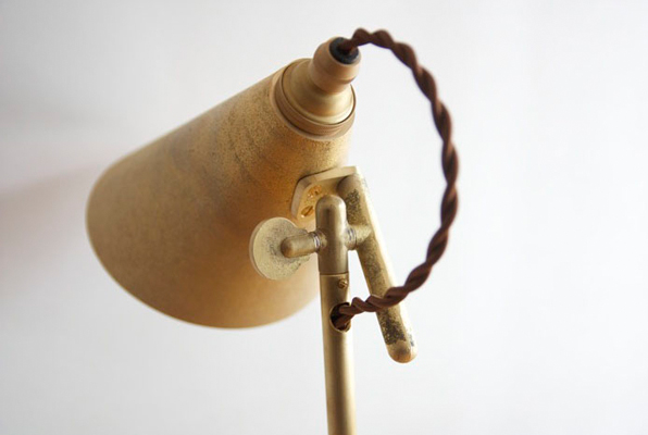富山県高岡市は仏具などをメインとした真鍮鋳物が古くから伝統産業として盛んな地域です。 そんな高岡の鋳物メーカーである(株)二上とデザイナーの大治将典 氏によって開発された真鍮鋳物のデスクランプです。外装パーツ全てが真鍮でできているという鋳物メーカーならではの作り。シェードの角度はつまみをゆるめて調整できます。ベースについたトグルスイッチの感触も楽しめる照明です。 ※コード長さは2mです。 ※納期は受注生産の為、約3ヶ月程となります。