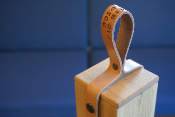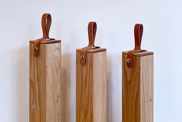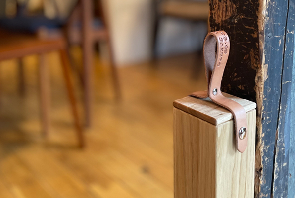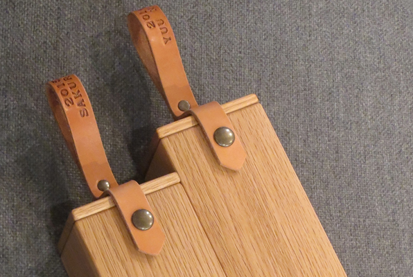 弘前で活動するEasy Livingの葛西さんが製作する積み木です。中の積み木は無塗装、外側の本体ボックスケースはクリのオイル仕上げ。お子様にも安心な仕上げです。子供のモノだけど、ボックスに納まってる状態だとこどもこどもしてない感じ、何が出てくるか言われるまで分からない感じ。出てくるのは無垢の木の積み木。そんなところがいいですね。更に革の取手には生年月日と名前の刻印が可能です。