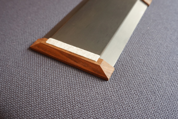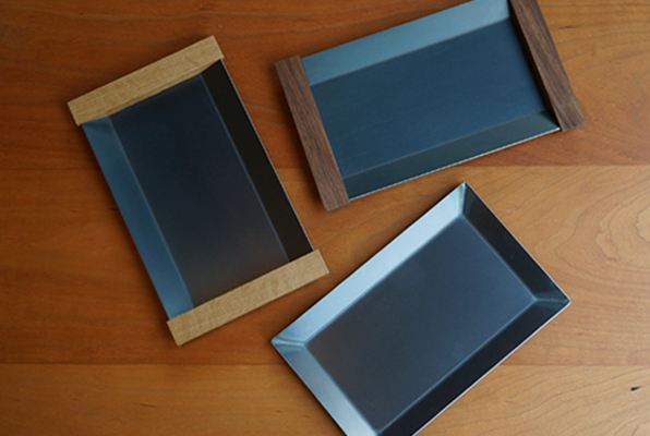 長手方向のエッジ部分はプレス加工で少し立ち上げ、短手方向のエッジには無垢の木を組み合わせ異素材を上手く使った仕上げになっております。鉄部分は塗装などはあえてせずにワックスのみで仕上げているので、そもそもの鉄の風合いが残り一つ一つ微妙にに違った雰囲気になりますが、この鉄の素材感がなんともいえないトレーです。