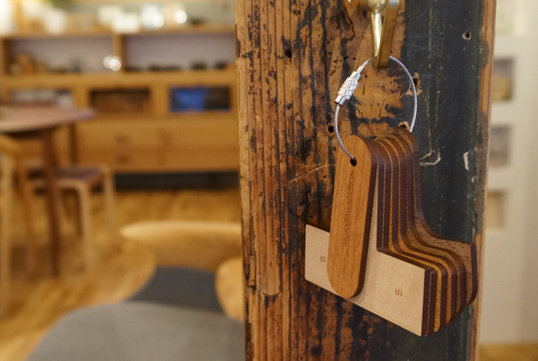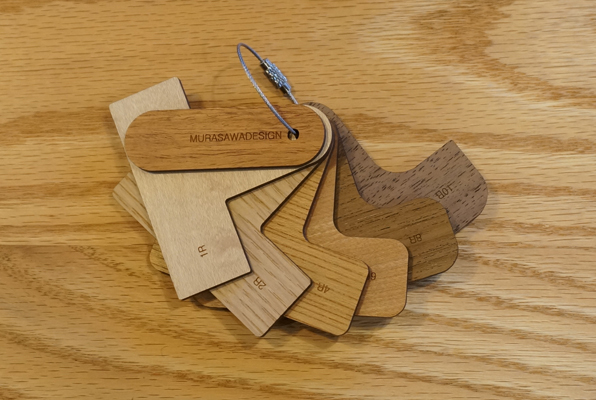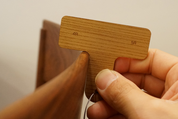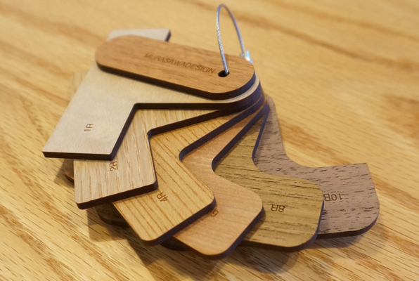 数年前、とある工場のワークショップで初めて村澤さんとお会いする機会がありました。その際、村澤さんがカバンの中から突如として取り出した木のキーホルダーのようなモノ。それがこのR定規のプロトタイプでした。そもそも村澤さんが個人として製作したものだったのですが、一目惚れしたワタクシは商品化してください ! っと熱烈アピール。そんな経緯もあり当店では定番として販売させて頂いております。正直言って業界人にしかほぼ役に立たず....というか必要性がなく、一般受けしない事間違いない商品ではありますが、一握りの層から絶大なる支持を受けるマニアックアイテム。キーホルダー感覚で気兼ねなく持ち歩け、尚かつ7枚の板が全て違う樹種でできているという事でR定規としての『測る』という機能の他に樹種サンプルにも同時になるという、これまたマニア心くすぐる逸品です。使いそうな業界人へのプレゼントとしてもオススメです。