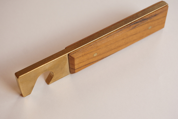 そのLueとホルツとのコラボで栓抜きを制作致しました。真鍮部分をLueが、持ち手の木部分をHolzが担当しています。