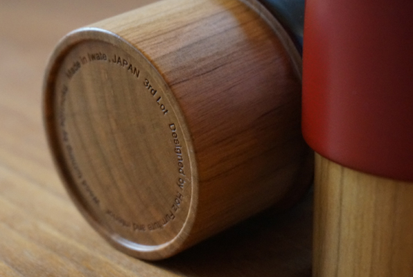 径が比較的細く、真っ直ぐの立ち上がり、尚かつ内側にも段差がある為、塗りもかなり難易度の高い作業になりますが、一つ一つ丁寧に仕上げて頂いております。底面には制作者や産地、Lot番号をレーザー加工で施しました。漆器でこういった仕上げは少し珍しいかもしれませんが、そのあたりが岩手らしさ+ホルツらしさかとは思っております。箱にはほぼ実寸で箔押しを。通常のウレタン仕上げのものは黒の箔ですが、漆タイプに関しては金の箔を使用しております。日常使いはもちろん結婚祝いなどギフトにもオススメの逸品です。積み重ね(kasane)塗り重ね(kasane)のノーマルタイプ以上に、より『kasane kop』というネーミングも際立つものとなりました。