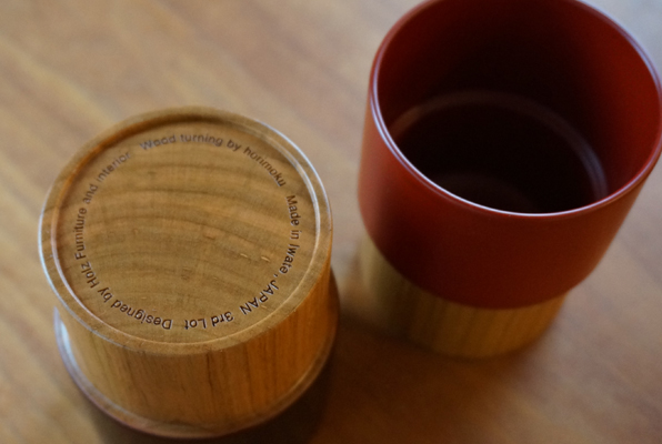そんな一見普通のカタチを一からフラットな目線で見直し、岩手県の木地師(horimoku / 堀 秀慈郎 氏)と共に試作を重ね、木で制作しました。温かい飲み物も冷たい飲み物もどちらも普通に使える日常のコップですが見慣れたカタチなだけに逆にとても新鮮な雰囲気に。