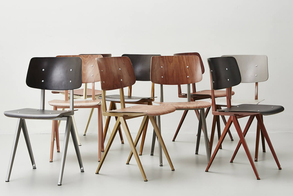 インダストリアルチェアModel S16は1950年代後半から60年代初めに、学校、オフィス、病院、ダイニングホールなどの公共施設でのヘビーユーズに耐えられるよう、安価で実用性と耐久性が織り込まれたデザインとして製作されました。 その後、国内の多くの施設にシェアが広がり、同社の代表的な製品として認知されるようになった椅子の一つです。 一度は生産停止となったものの、ヴィンテージとして世界中にファンを持つS16は、2014年に生産を再開。 Jean Prouve,Wim Rietveld,Friso Kramerらの工業製品の流れを汲んだシンプルで工業的な外観と豊富なカラーバリエーションが、時代や環境を超越し、住宅から商業施設、様々な空間で使用されいます。 【納品例】 2021年03月 / 岩手県 Y様 邸 2020年06月 / 岩手県 it's FOR MEN様 2020年04月 / 岩手県 manordaいわて 様 2020年03月 / 岩手県 BEAR BASE BAEREN 様
