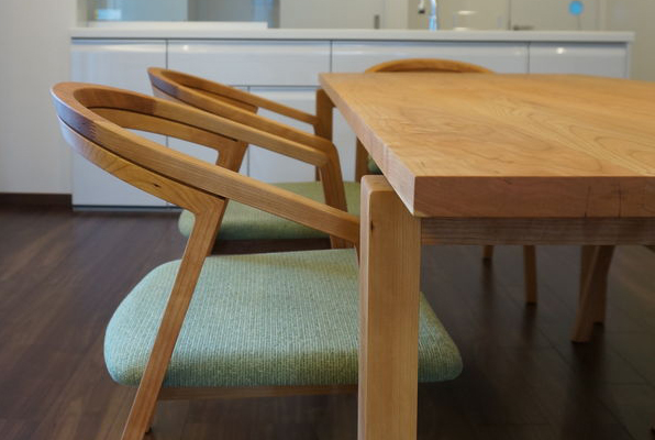 小泉さんは家具や小物以外に建築設計も行います。宮崎椅子製作所の事務所棟の設計も担当しております。 働くスタッフが心地いい環境で過ごせる場として陽当たりの良い一番気持ちのいい場所にスタッフルームを計画し、その部屋には大きなテーブルが必要となり、空間に合ったデザインをしてできたのが『MI table』です。 当初は商品化の予定はなく制作されたものですが、欲しいという声が多かったためデビューとなったテーブルです。