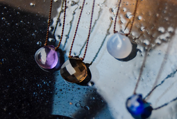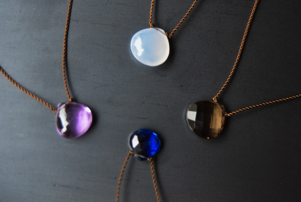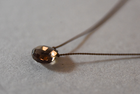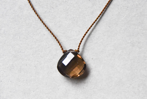 Margaret Solow / マーガレット・ソロウはロサンゼルスで活動するジュエリーデザイナーです。 ナイロンコードを用いて天然石の美しさを強調したミニマルでお守りのような存在感のあるネックレスです。 チェッカー模様の美しいカットが特徴的で光が当たるとより一層輝き小粒ながらもとても存在感のあるネックレスです。
