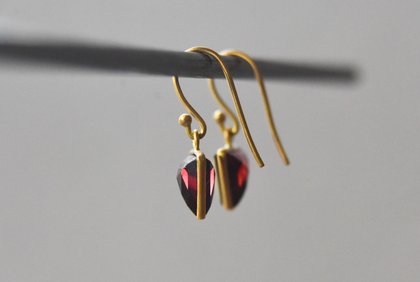 Small Triangle Stone Earrings / Garnet