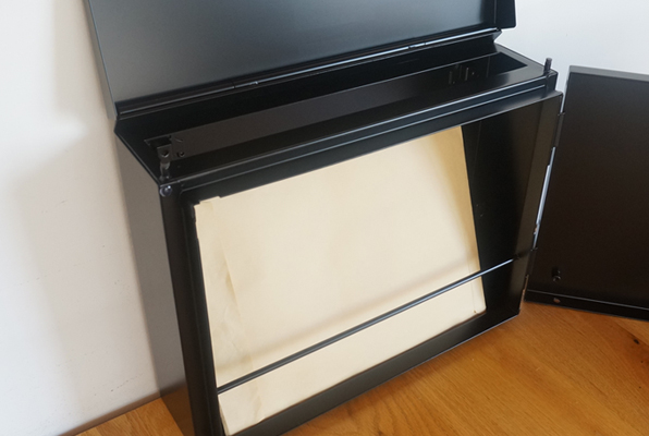 本体サイズに関しては従来のw300タイプより幅を100mm大きくしました。奥行きと高さに関しては従来のw300タイプと一緒です。大きな郵便物(レターパックなど)もこちらのw400mmタイプは綺麗に納まります。
