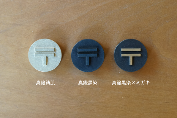 また、MATUREWARE ( FUTAGAMI )の表札とホルツのポストの組み合わせでセレクトされるお客様も増えてきたことから、真鍮鋳物での〒マークも開発しました。基本サイズは木象嵌や貝象嵌のものと一緒となり、製造に関してはもちろんFUTAGAMI製となります。