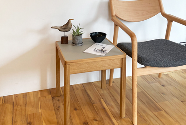 リノリウムの天板が印象的なシンプルなサイドテーブルです。