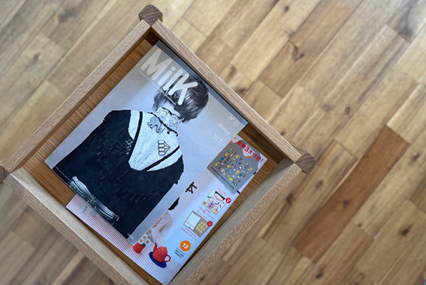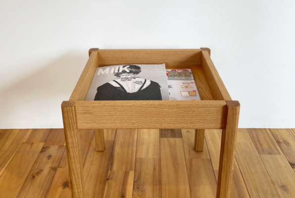 天板自体は裏の突起部分が引っかかっているので、置いている時は固定され、スライドする時も用意であり、完全に取り外すしてトレイとしてそのまま使用する事も可能です。またエッジにはRが取られており、サイドテーブルではありますが、サイズ的にもキッズテーブルとしての使用にも適しております。使用期間が比較的短いキッズテーブルとして使い、その役目を済ませた時点でサイドテーブルとして活躍してもいいかもしれません。そういった意味で考えてもとにかく『はたらくサイドテーブル』です。