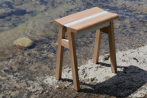 「支点」「支柱」といった意味を持ち、板金加工されたパーツデザインが構造の中心となり、異素材の組み合わせとしても絶妙なバランスです。