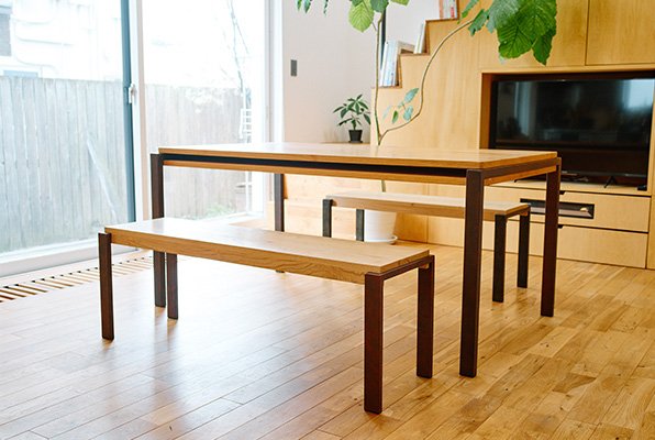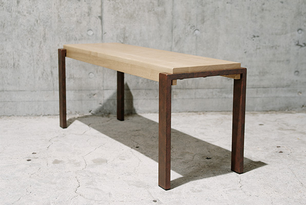 Sandwich Benchは、2011年から販売されているSandwich Table に合わせてデザインされました。 【 デザイン : 小泉誠 / 製造 : 若葉家具株式会社 / 言い出しっぺ : Holz 】という三者による共同開発のオリジナル商品です。 テーブルは2枚の天板で鉄脚をサンドウィッチしているのに対し、ベンチはサイドから見た時にコの字の木部に、コの字の鉄脚部が挟みこまれる形状になります。木と鉄のサンドウィッチという大枠での構造共通点を残しながら、ベンチという道具に小泉デザインがきっちりと落とし込まれました。 Sandwich Benchの木部は岩手県盛岡市産材の『クリ』を使用しております。硬さと弾力を兼ね備え、耐水性にも優れた材であり、リビングダイニングはもちろんの事、玄関や土間、外部(軒下)での使用もイメージしています。脚部に関しては、黒染め、亜鉛メッキ、エイジング塗装(錆、モルタル)という鉄の雰囲気を最大限に引き出した計4種を揃えました。様々な使用環境に合わせられるよう、仕上げの選択肢が多いのも特徴の一つです。 木部にサンドウィッチする具材(脚部)はお好みで選択くださいませ。 【 Sandwich Bench 特設ページはこちら 】 【納品例】 2025年09月 / 岩手県 I様 邸 / クリ × 黒染め 2025年07月 / 青森県 A様 邸 / クリ × エイジング塗装(モルタル) 2025年06月 / 岩手県 BOOK NERD 様 / クリ × 黒染め