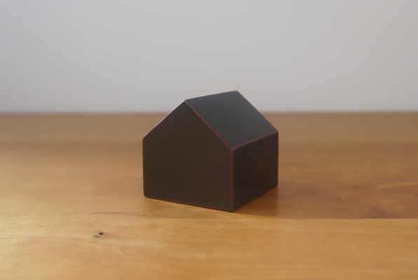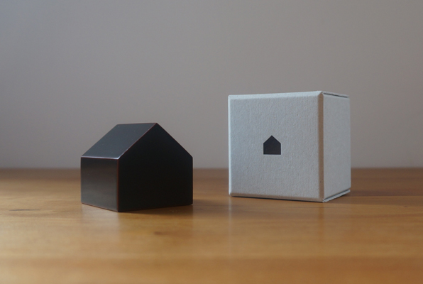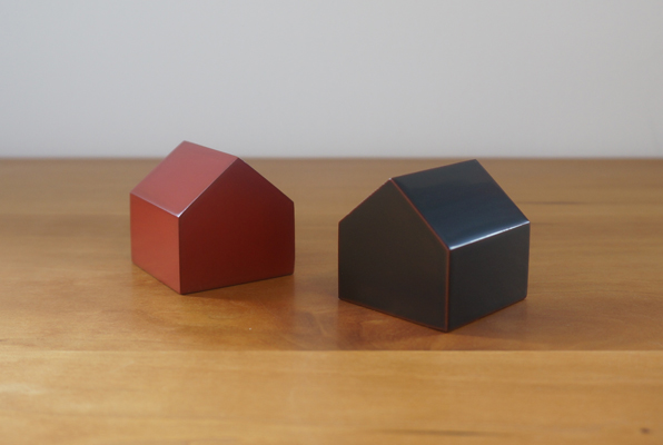 岩手の伝統工芸の一つである漆塗りの技術を用いて制作した家型のペーパーウェイトです。