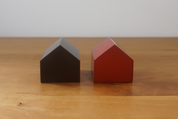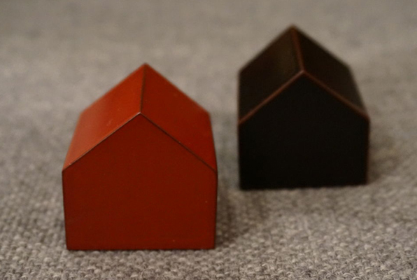 岩手の伝統工芸の一つである漆塗りの技術を用いて制作した家型のペーパーウェイトです。
