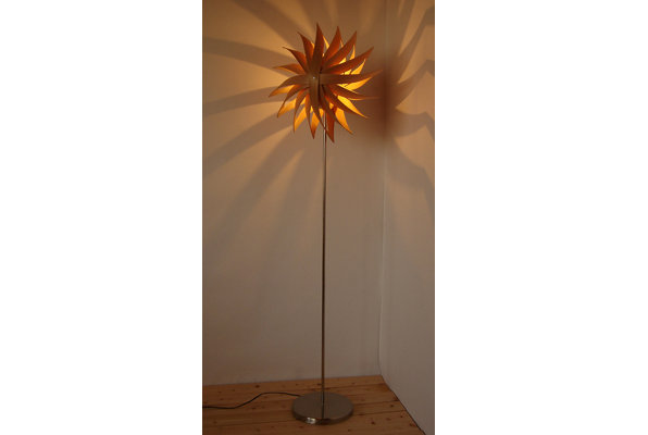 この照明は日本の伝統工芸(曲げわっぱ)の技法を用いた作品です。素材に秋田杉を使用する事によって、視覚的インテリアと嗅覚的インテリアを実現させております。明りを燈す事によって杉独特の香りが楽しめます。ワッパシェードのフロアタイプです。部屋のコーナーなどに置くと美しい光と影が壁に映し出されます。 ※コード長さは2500mm、中間スイッチ付き ※60w E-26クリア球(100wまで対応します。)