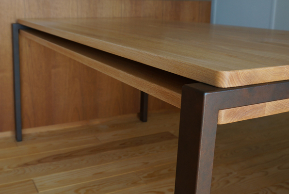 家具デザイナー小泉誠さんデザインのテーブルです。 脚部が2枚の天板に挟まれている事から『Sandwich Table』となりました。 あえて節などを残した無垢の天板と、錆のような風合いに加工された鉄の脚部という異素材の組み合わせが特徴的なデザインです。 また、天板と天板の間のスペースは30mmあり雑誌や新聞、ランチョンマットなどを収納する事が可能で、テーブルトップにモノが散らかりにくく、サイズ以上に広い感覚で使用する事ができます。 元々、脚部が木のタイプのSanswich Tableは存在していましたが、Holzの『脚部が鉄バージョンが欲しい』という要望に小泉さんが2年の月日をかけて商品化して下さった、ホルツが『言い出しっぺ』のとても思い入れの強いテーブルです。 新築の建物はもちろん古い建物にもよく馴染み、様々な空間に対応できる仕上がりになっております。 ※サイズは1600サイズ、1800サイズ、2000サイズもございます。 お気軽にお問い合わせくださいませ。 ※ Sandwich Bench もデビューしました ! (2025.6.1) 【 Product Story 1 - kitokana - 】 【 Product Story 2 - コイズミワールド - 】 【 Product Story 3 - 柳宗理 展 - 】 【 Product Story 4 - 名古屋配達 - 】 【 Product Story 5 - 少ないという提案 - 】 ※Product Storyは1話につき約5分の音声です。 【納品例】 2025年09月 / 岩手県 I様 邸 / レッドオーク 2024年05月 / 岩手県 O様 邸 / ブラックチェリー ( w1600mm ) 2023年12月 / 岩手県 K様 邸 / レッドオーク ( w1600mm 脚部 : モルタルグレー ) 2023年09月 / 岩手県 I様 邸 / レッドオーク 2023年05月 / 岩手県 盛岡市中央公園ビバテラス / レッドオーク ( 脚部 : モルタルグレー ) 2023年05月 / 岩手県 H様 邸 / ブラックチェリー 2022年10月 / 富山県 Y様 邸 / レッドオーク ( w1800mm 脚部 : ブラック ) 2022年03月 / 岩手県 御所野縄文博物館 / レッドオーク ( w1800mm 脚部 : モルタルグレー ) 2022年03月 / 北海道 Y様 邸 / レッドオーク ( w1800mm ) 2021年09月 / 岩手県 G様 邸 / レッドオーク ( w2000mm 脚部 : モルタルグレー ) 2021年07月 / 岩手県 S様 邸 / レッドオーク ( 脚部 : Black ) 2021年05月 / 岩手県 M様 邸 / ウォールナット 2021年04月 / 岩手県 M様 邸 / ウォールナット ( w1600mm ) 2021年03月 / 岩手県 M様 邸 / ブラックチェリー ( w1800mm ) 2021年03月 / 岩手県 Y様 邸 / レッドオーク 2020年11月 / 岩手県 S様 邸 / ブラックチェリー ( w1600mm 脚部 : Black ) 2020年09月 / 長野県 K様 邸 / レッドオーク ( 脚部 : Black ) 2020年07月 / 岩手県 S様 邸 / ウォールナット 2020年05月 / 岩手県 T様 邸 / レッドオーク ( w1400mm 脚部 : Black ) 2020年03月 / 岩手県 M様 邸 / ブラックチェリー 2019年12月 / 岩手県 H様 邸 / レッドオーク 2019年12月 / 秋田県 A様 邸 / ウォールナット 2019年07月 / 岩手県 Y様 邸 / アッシュ ( w1600mm 脚部 : Black ) 2019年07月 / 岩手県 Y様 邸 / レッドオーク ( w2000mm ) 2019年07月 / 岩手県 N様 邸 / ウォールナット 2019年06月 / 岩手県 K様 邸 / ブラックチェリー 2019年02月 / 岩手県 K様 邸 / ウォールナット 2019年01月 / 岩手県 K様 邸 / レッドオーク ( w1800mm 脚部 : Black ) 2018年10月 / 岩手県 N様 邸 / レッドオーク 2018年06月 / 岩手県 D様 邸 / ウォールナット 2018年04月 / 岩手県 S様 邸 / レッドオーク ( w2000mm ) 2018年03月 / 岩手県 S様 邸 / レッドオーク ( w1600mm ) 2017年12月 / 岩手県 K様 邸 / ウォールナット ( w2000mm ) 2017年12月 / 宮城県 K様 邸 / レッドオーク ( w1600mm ) 2017年11月 / 岩手県 K様 邸 / レッドオーク 2017年04月 / 岩手県 S様 邸 / レッドオーク ( w1600mm ) 2017年04月 / 岩手県 Y様 邸 / ウォールナット ( w1800mm ) 2016年12月 / 岩手県 K様 邸 / レッドーオーク ( w1600mm ) 2015年12月 / 岩手県 Y様 邸 / レッドーオーク ( w1600mm ) 2015年09月 / 秋田県 I様 邸 / レッドーオーク 2015年06月 / 岩手県 S様 邸 / ウォールナット 2015年05月 / 岩手県 S様 邸 / レッドオーク ( w2000mm ) 2015年05月 / 岩手県 M様 邸 / レッドオーク ( w1800mm ) 2015年03月 / 岩手県 U様 邸 / レッドオーク 2014年06月 / 岩手県 M様 邸 / レッドオーク 2014年04月 / 宮城県 O様 邸 / レッドオーク 2014年03月 / 宮城県 S様 邸 / レッドオーク ( w1600mm ) 2014年02月 / 岩手県 T様 邸 / レッドオーク ( w1800mm ) 2013年09月 / 秋田県 H様 邸 / レッドオーク ( w1600mm ) 2013年08月 / 岩手県 K様 邸 / レッドオーク 2013年05月 / 岩手県 T様 邸 / ブラックチェリー ( w1600mm ) 2013年03月 / 岩手県 O様 邸 / レッドオーク ( w1800mm 脚部 : カット ) 2013年01月 / 岩手県 K様 邸 / レッドオーク ( w1600mm ) 2012年10月 / 岩手県 S様 邸 / レッドオーク 2012年08月 / 岩手県 T様 邸 / ウォールナット ( w1600mm ) 2012年06月 / 岩手県 A様 邸 / レッドオーク ( w1600mm ) 2012年05月 / 愛知県 K様 邸 / レッドオーク 2012年04月 / 岩手県 S様 邸 / レッドオーク 2012年04月 / 岩手県 M様 邸 / レッドオーク 2012年03月 / 岩手県 S様 邸 / レッドオーク