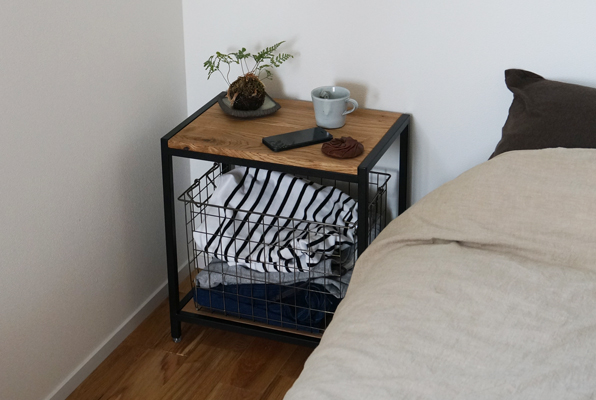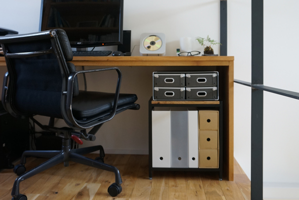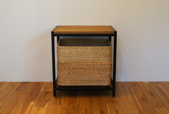 そもそもスツールという家具は様々なシチュエーションで使用される家具です。リビングやダイニングで普通に座るスツールとして、玄関先で靴を履くとき用として、ソファ脇のサイドテーブルとして、ベット脇のナイトテーブルとして、高い所のものを取る時に踏み台だったり、洗面台や脱衣所などで使っても良いかもしれない。そんなところから家具ではあるけど、サイズも小さいし、とても重宝する道具感が強い家具かと思います。下段を作った事で様々なモノをそこに納める事が可能です。サイズ感は既製品のカゴやバスケット、書類のサイズなど様々なモノを採寸して割り出した寸法になってます。また、奥行きを比較的狭くした事で、家の中の様々な所で使い勝手の良いモノになりました。デザインし過ぎず、椅子や収納の寸法から追っていきできた実用サイズです。結果パッと見は普通ですが、サイズ感や細かい納まりは既製にはあまりない仕上がりになりました。