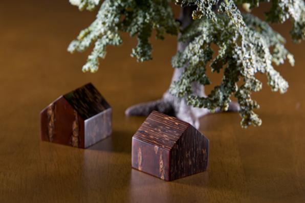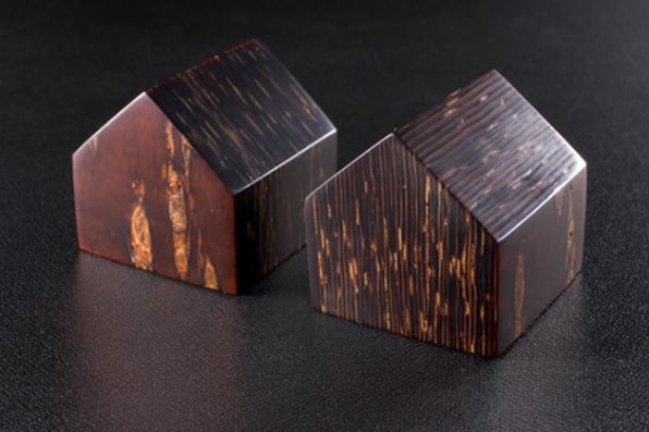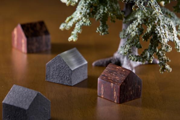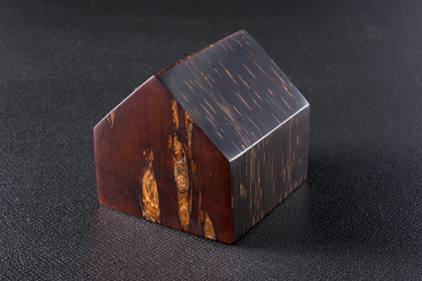 秋田県角館の伝統工芸である樺細工の技術を用いて制作したシンプルな家型のオブジェです。
