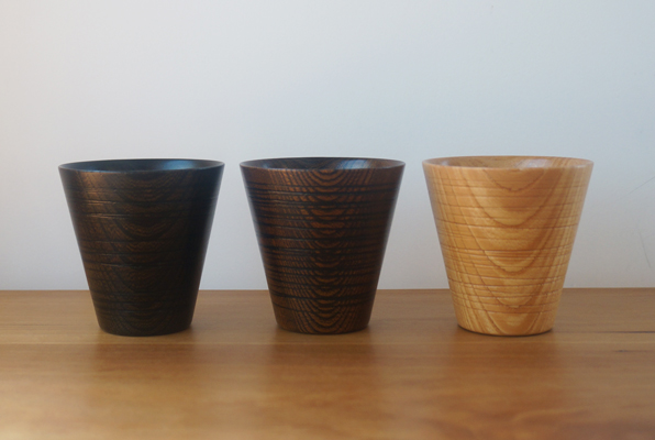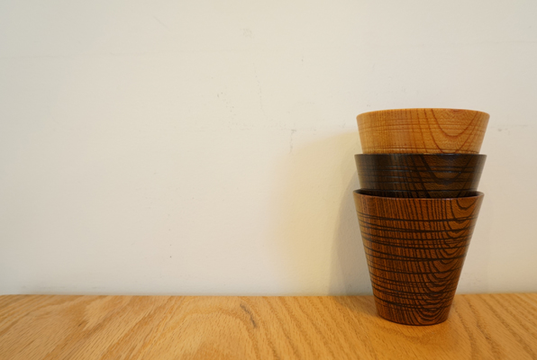 木工轆轤(もっこうろくろ)の技術を用いて制作した欅(けやき)のフリーカップです。 木地は岩手県九戸郡洋野町の職人さんに極力薄く挽いてもらい、外側にランダムに筋を入れる事でよりシャープな雰囲気を作りだしました。口当たりも良く、握った時の手にすっと馴染む感じがとても心地よいカップです。お酒や焼酎など冷たい飲み物からお茶やコーヒーといった温かい飲み物まで幅広くお使い頂けます。黒と茶は拭き漆、ナチュラルはウレタンで仕上げております。ギフトなどにもオススメです。