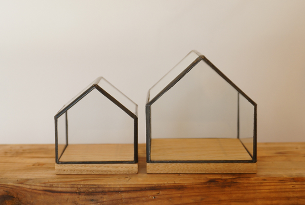 木のベースの製作は花巻の藤澤康さんにお願いしナラとウォールナットの2種類。ガラス部分は僅かではありますが、サイズに個体差ありますので、少し手間はかかりますが、一つ一つ合わせて制作して頂いております。そんな小さな家型のショーケースです。お好きな 『 ~ in HOUSE』にして下さいませ。